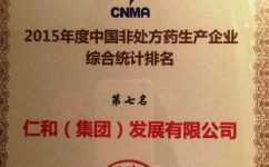 2015年度中國非處方藥產品綜合統計排名 第七名 仁和集團發展有限公司