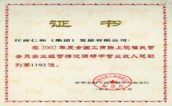 2002年度全國工商聯(lián)上規(guī)模民營會(huì)員企業(yè)經(jīng)營情況調(diào)研中營業(yè)收入總額列第1192位