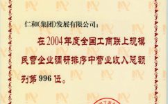 2004年度全國工商聯(lián)上規(guī)模民營企業(yè)調(diào)研排序中營業(yè)收入總額列第996位
